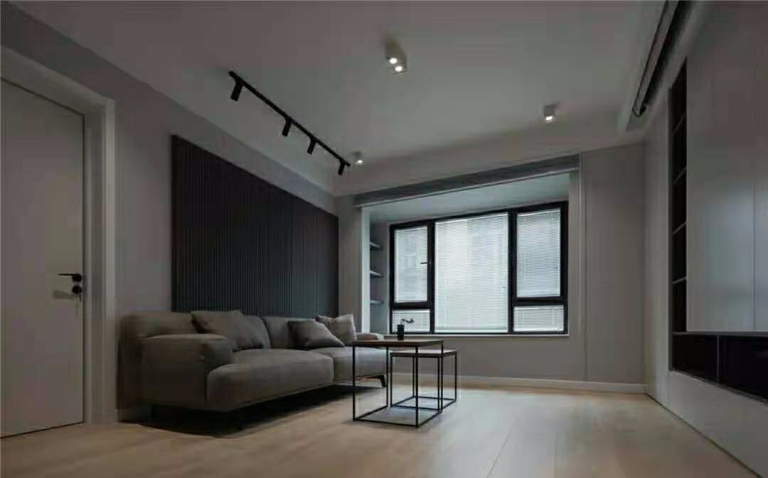 客厅保留原有飘窗,采用百叶帘引入自然光,保证公共空间的通透明亮。
