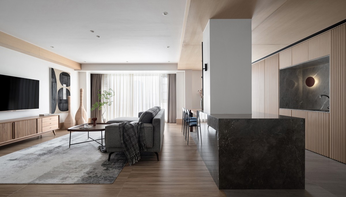 日式,与其说是一种风格,不如说是其所传达的生活态度——淡然、自在、闲适。高占比的原木色、格栅、半透明樟子纸,浅淡色彩与天然材质的大面积叙写,材质的回归自然,无不透露出宁静之感,颇有“非淡泊无以明志,非宁静无以致远”的生活姿态。
