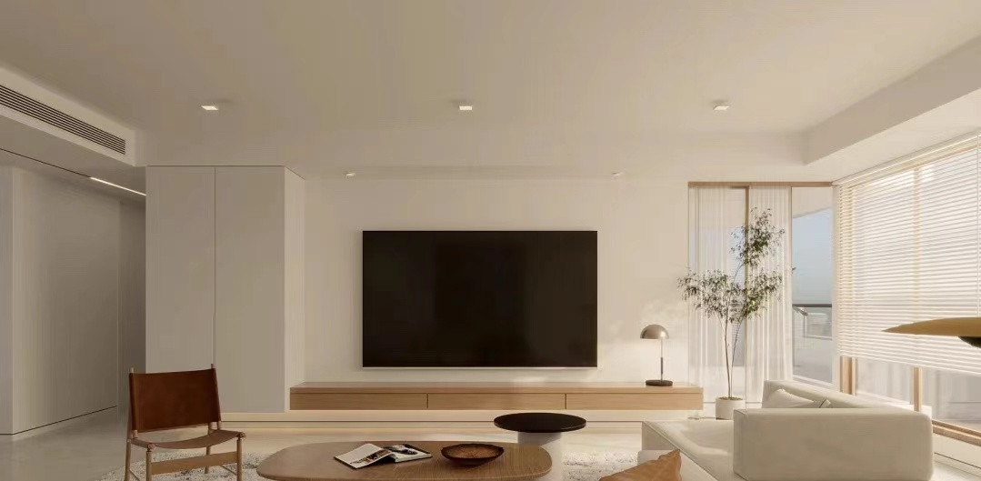 本案为中性原木色,整体清爽自然,增加储物的同时也不增加空间阻断。