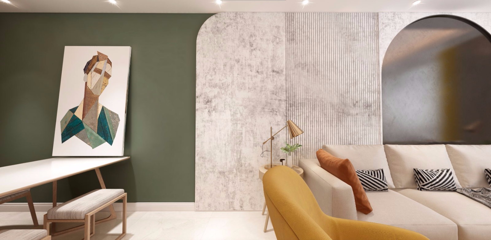 一处鹅黄色得家具跳色,