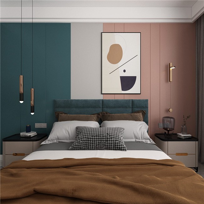 卧室在设计上更重视的是实用与舒适,屋主需要一个超大衣帽间,所以我们在尽可能少改动的前提下,扩大了进出主卧走廊空间,缩小卫生间空间得以实现动线流畅。