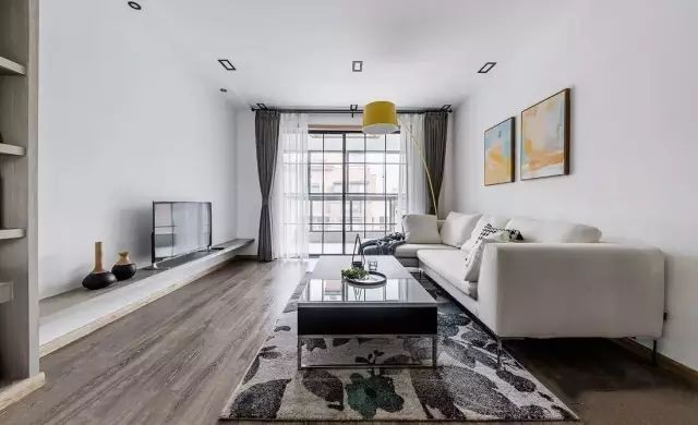 ◆这里是客厅,空间是不是非常大?客厅的搭配非常干净素雅,就是一个纯白空间搭配原木地板,显得自然又温和。