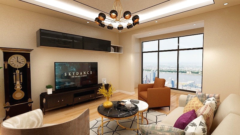 没有做客厅电视背景墙,但是为了不浪费空间,电视墙打吊柜很实用,半点空间都不浪费。