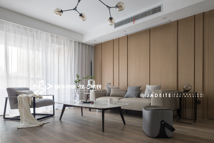 设计理念:本案定为台式简约风格,使用北欧元素进行混搭。采用块面和线条的穿插营造干净利落的空间气质,而木质饰面和爵士白石材让空间更宁静通透。