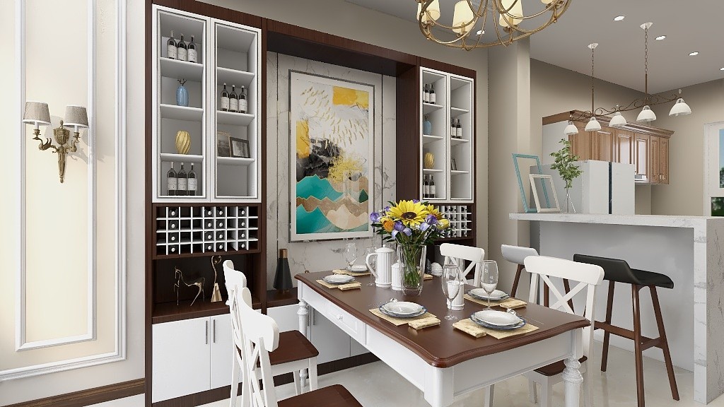 实木制造,外观显得高贵,通过起槽、镶嵌等形式来加固,稳重、大方。能够在不同角度下产生不一样的光感。这让美式风格厨房家具比金光灿烂的欧式风格厨房家具更耐看。