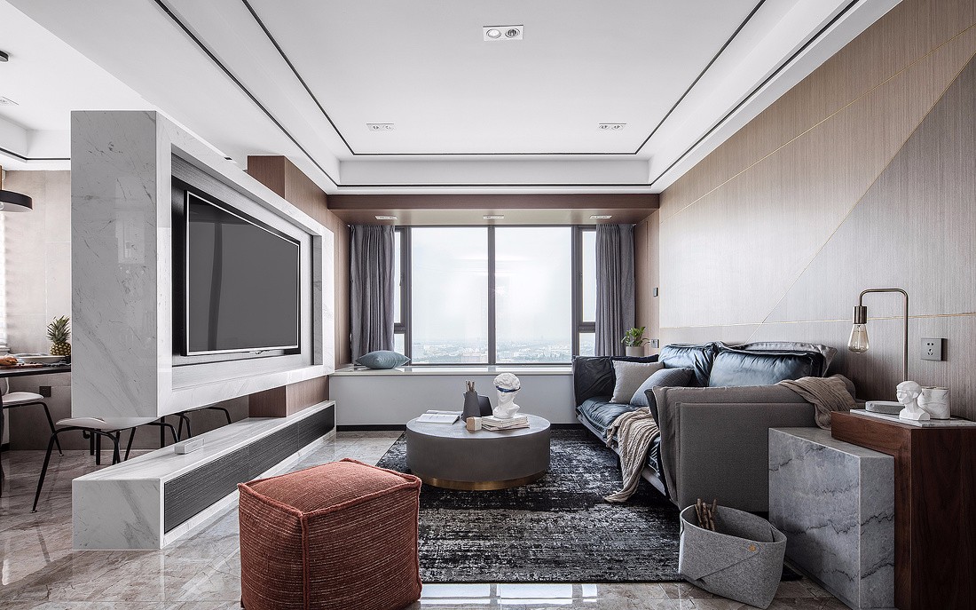 半通透的电视墙,让空间更加通透,极简的线条构成设计的主题,简不代表全部不做,空白。