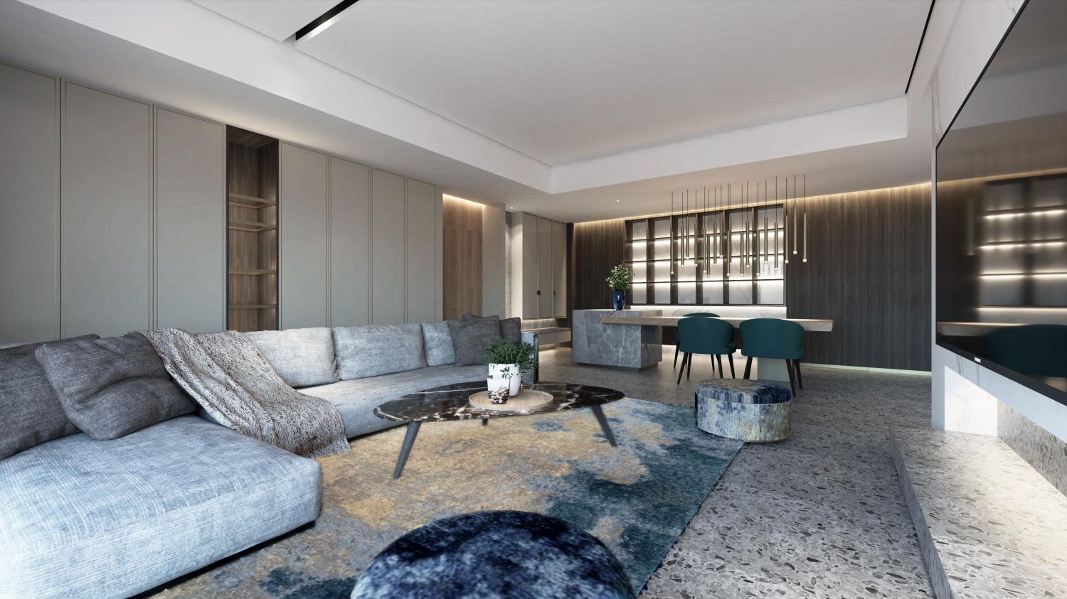 本案是现代轻奢风格,整体色调偏暖色,尽量保证每个空间的纵深感,让房主人回家心情舒畅、放松。给予一个家的感觉!