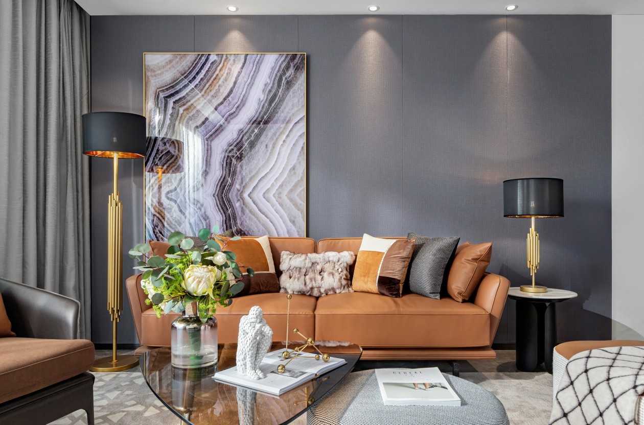 本案风格为现代港式风格,采用时尚精简、低调内敛的***灰是用于家居装扮的***基调色彩,呈现优雅魅力和精致大气的视觉感官,符合人们对现代生活的审美需求。同理,作为潮流都市代表色之一的暖橙,伊派设计在居家设计中的运用中,让空间张扬不浮夸、经典且时尚,成为永恒不变的***品味。