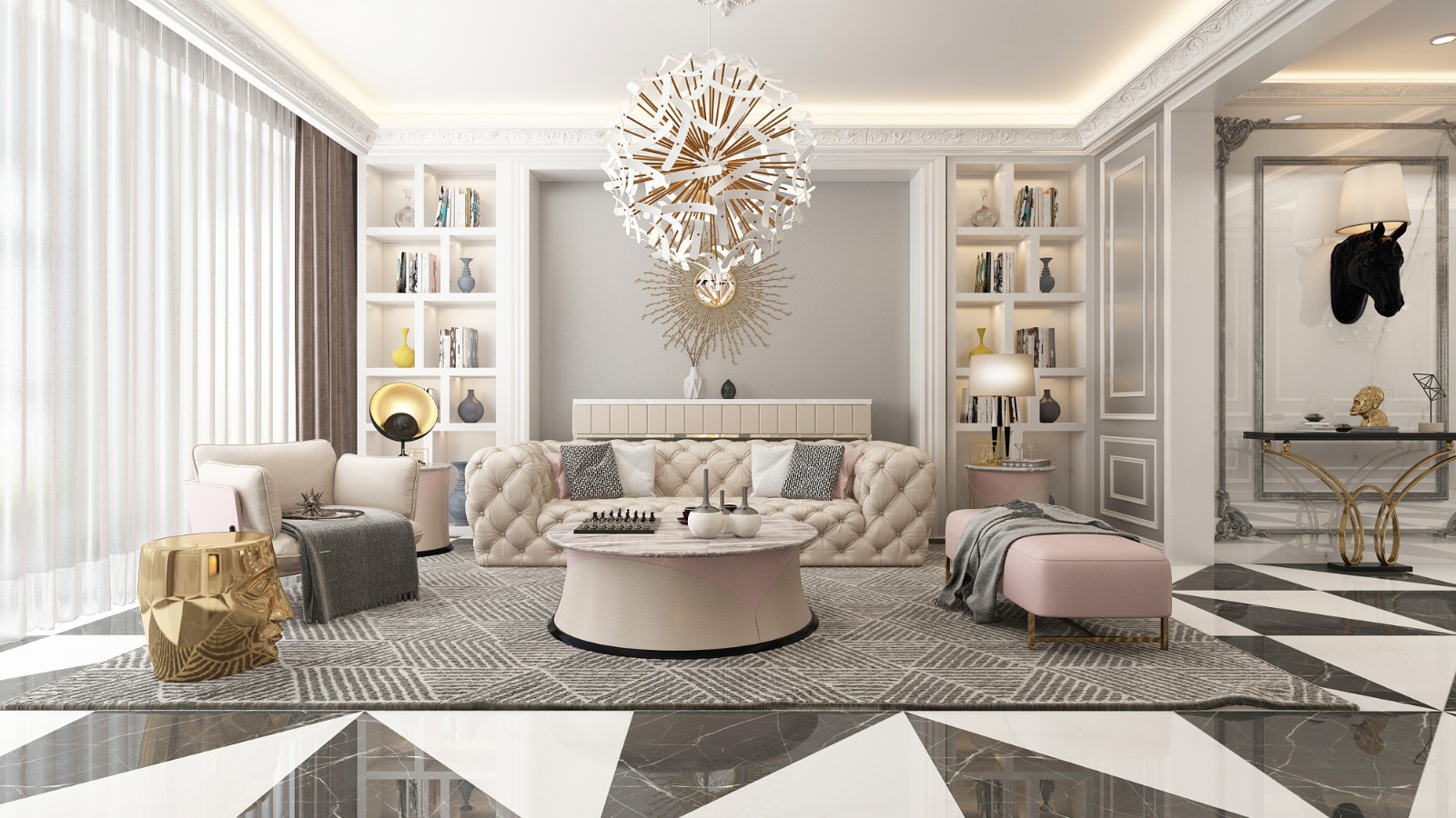 爵士白大理石点缀金色金属线条,
