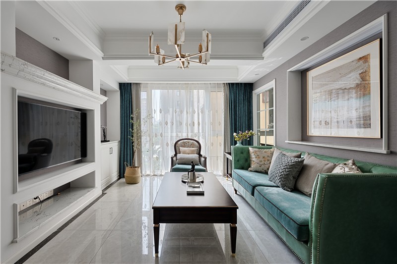 很有质感的茶几桌,加上丰富的吊顶,让客厅有一种宾客满堂的感觉