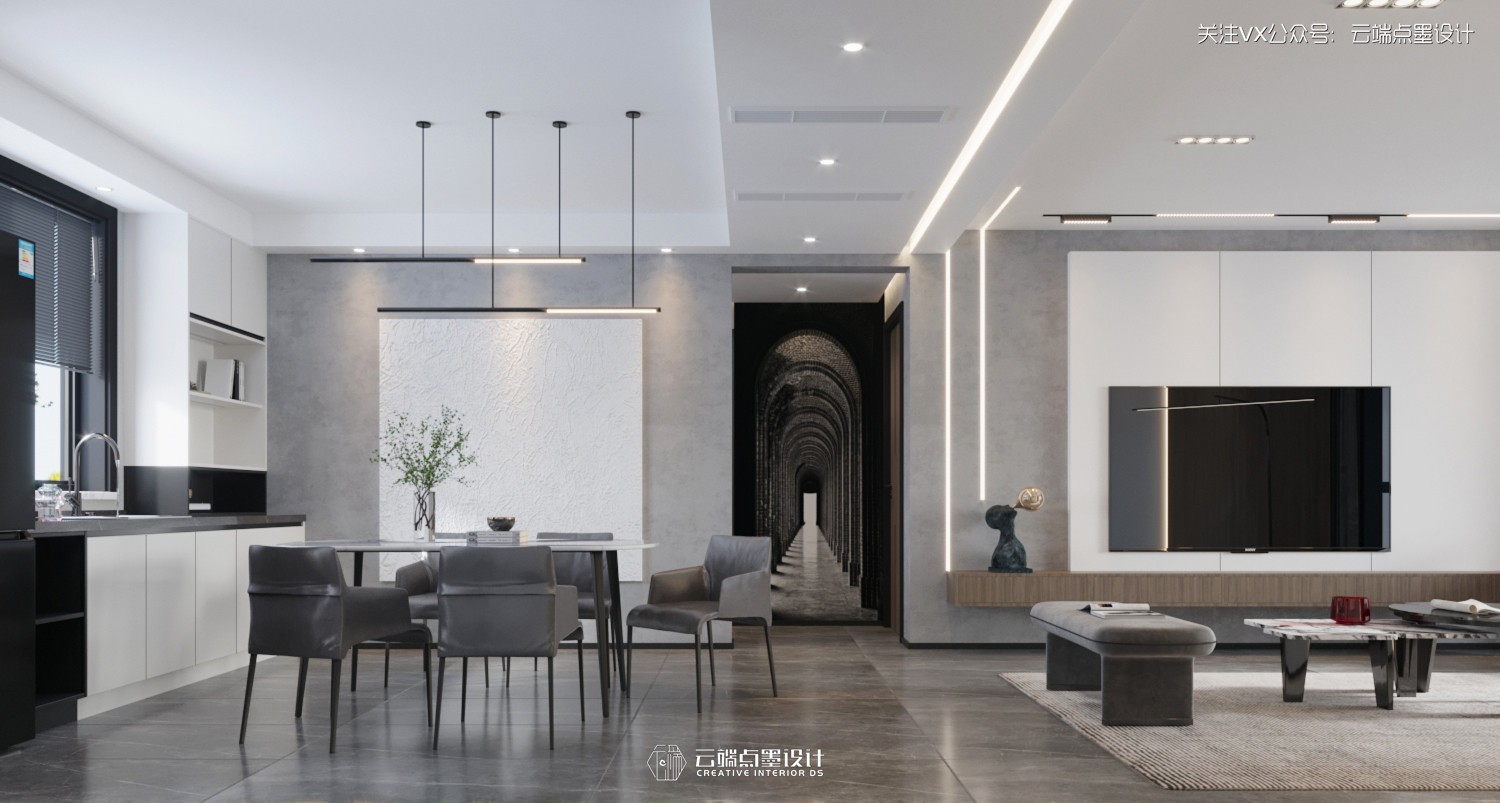 本案以黑白灰色彩为主,无主灯线条设计,表达简约时尚的主题风格,让现代家居的极简气质表达的淋漓尽致。生活的色彩与个性全在于自己的理解,享受属于自己的完美空间。生活的真谛,艺术的气质,是我们阐述的主题。 “褪去了浮华,简单的才是生活 。”