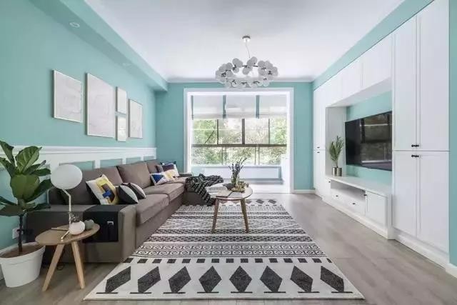 房子建筑面积110平,设计师以Ti***any蓝为主题,搭配白色家具,打造出简洁清爽的居家环境。