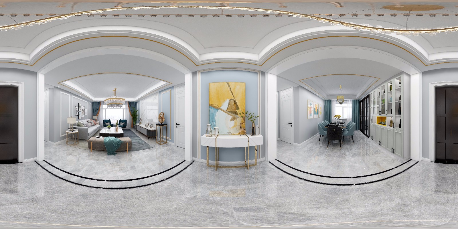 入户玄关简洁大方,划分客厅和餐厅空间。