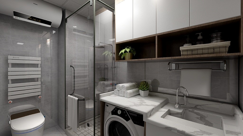 推开主卧的房门,***灰的主色调与室外空间自然衔接,在水泥灰基调开放式衣帽间衬托下,流露出对生活品质的讲究和精致,用色彩对区域划分,生活井然有序,梳妆台同时兼具了开放式书房的功能,满足日常的办公所需,全透明的衣帽间,保留了通透的采光,依然延续了无主灯设计,在灯光氛围的烘托下,也不失是一种工业风的设计语言。