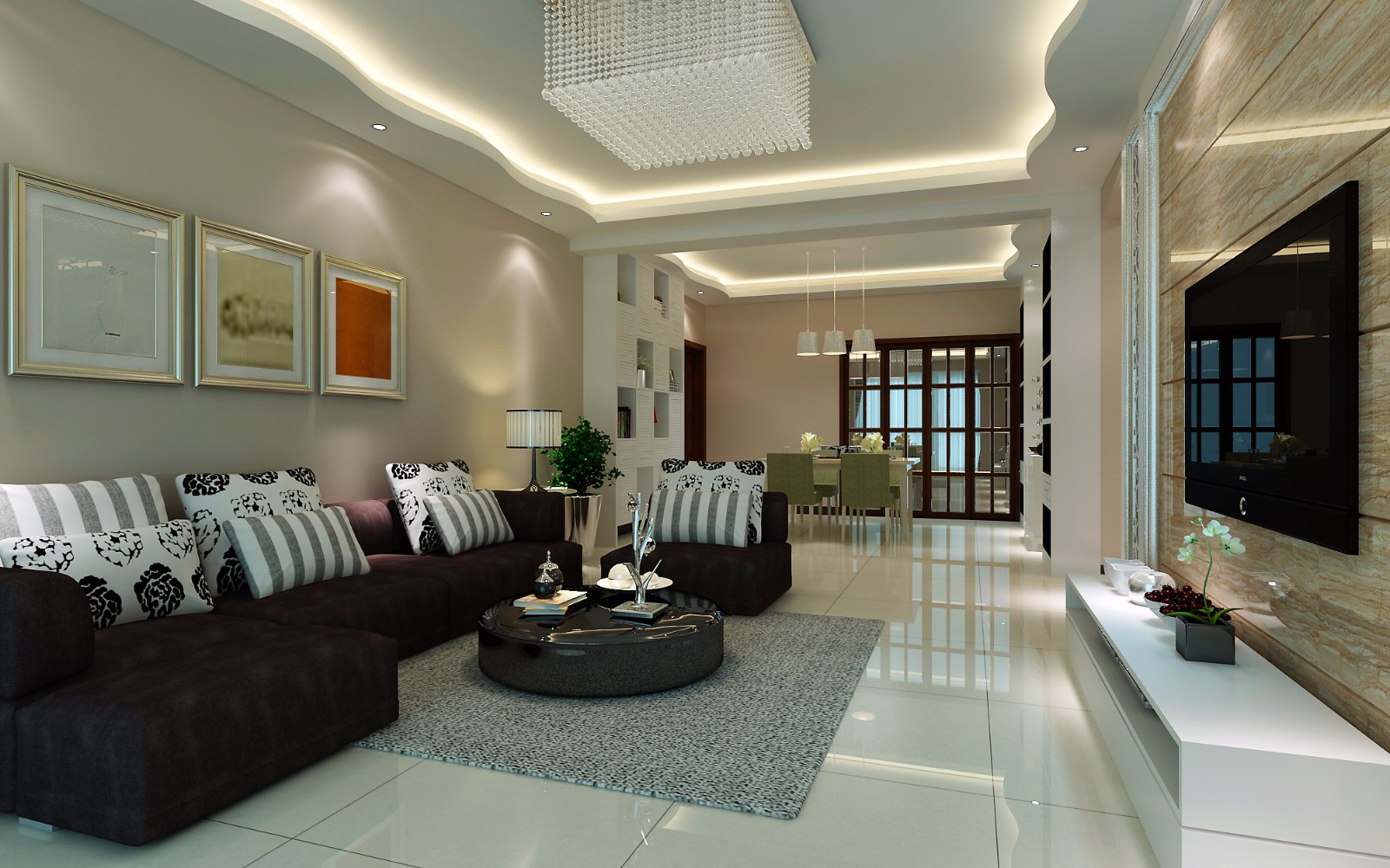 L型沙发搭配黑白抱枕