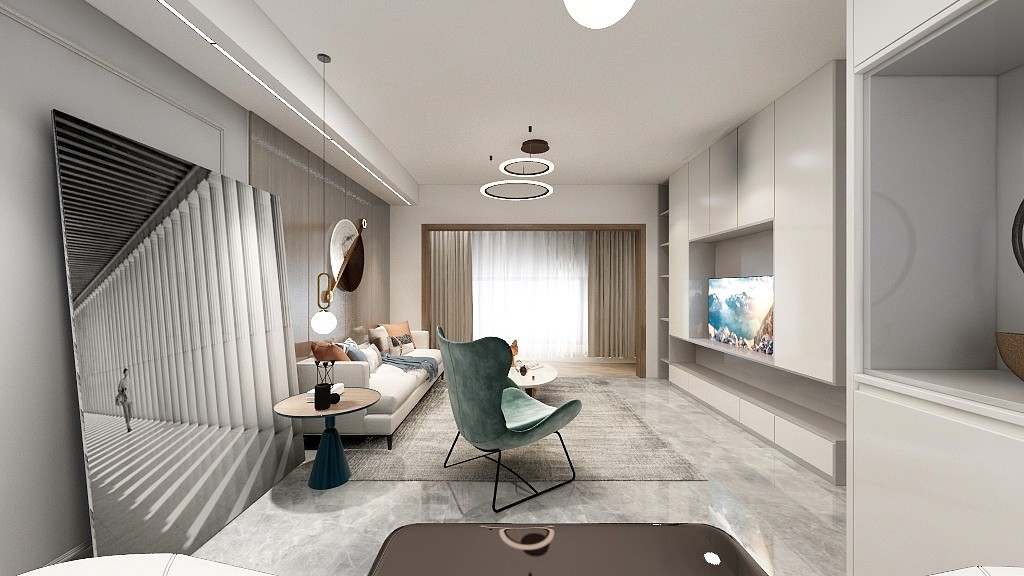 在空间平面设计中追求流畅感,实用性。墙面、地面、顶棚以及家具陈设配以简洁的造型、纯洁的质地、精细的工艺。