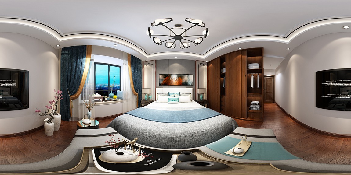中式客厅 客厅中空 二楼客厅阳台做茶室