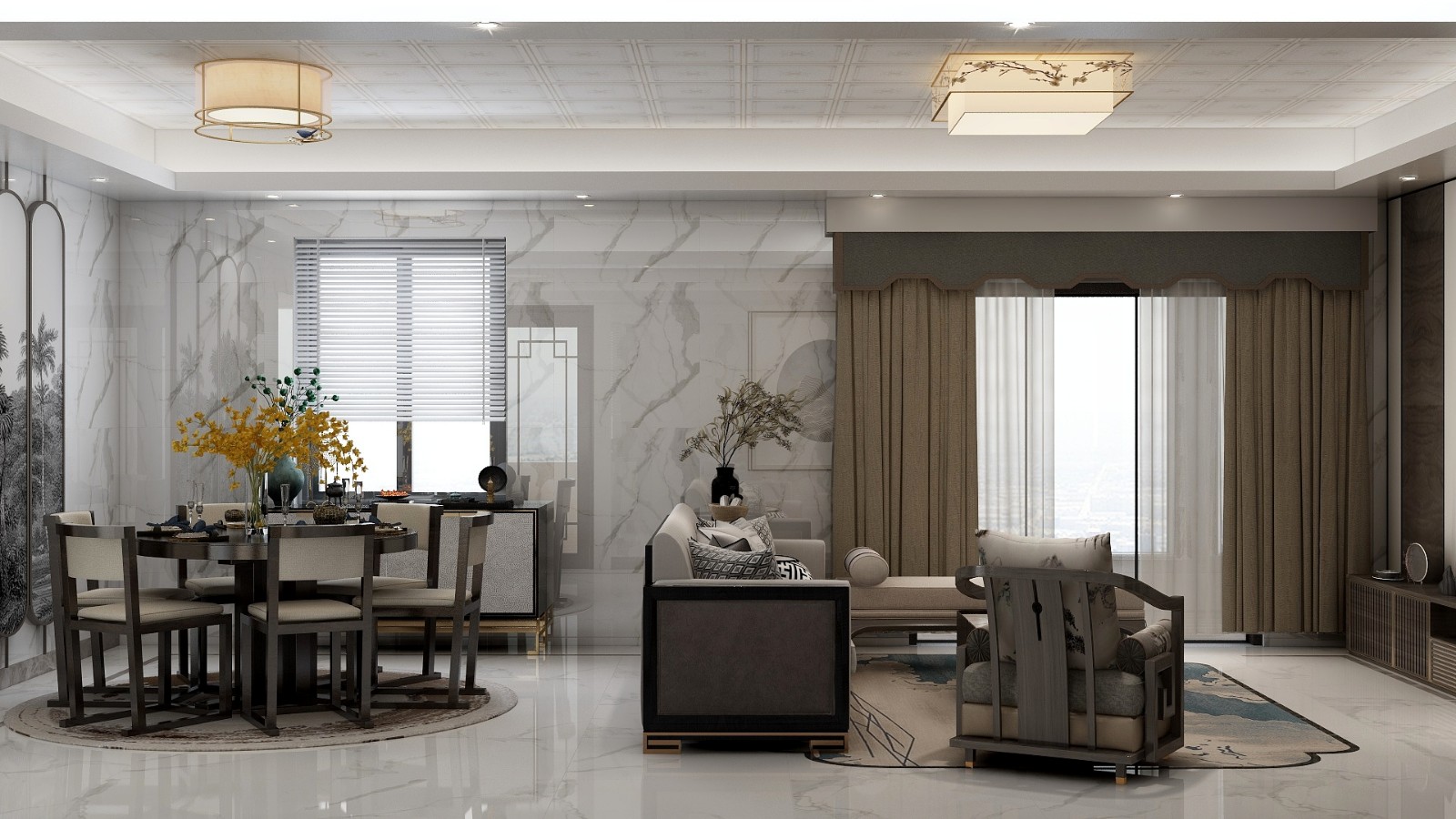 该风格为新中式,水墨之境可洞见物象与心境的微妙关系。于是设计便同山水的清灵,同中式的风雅,演绎一处惬意文雅的生活场所。