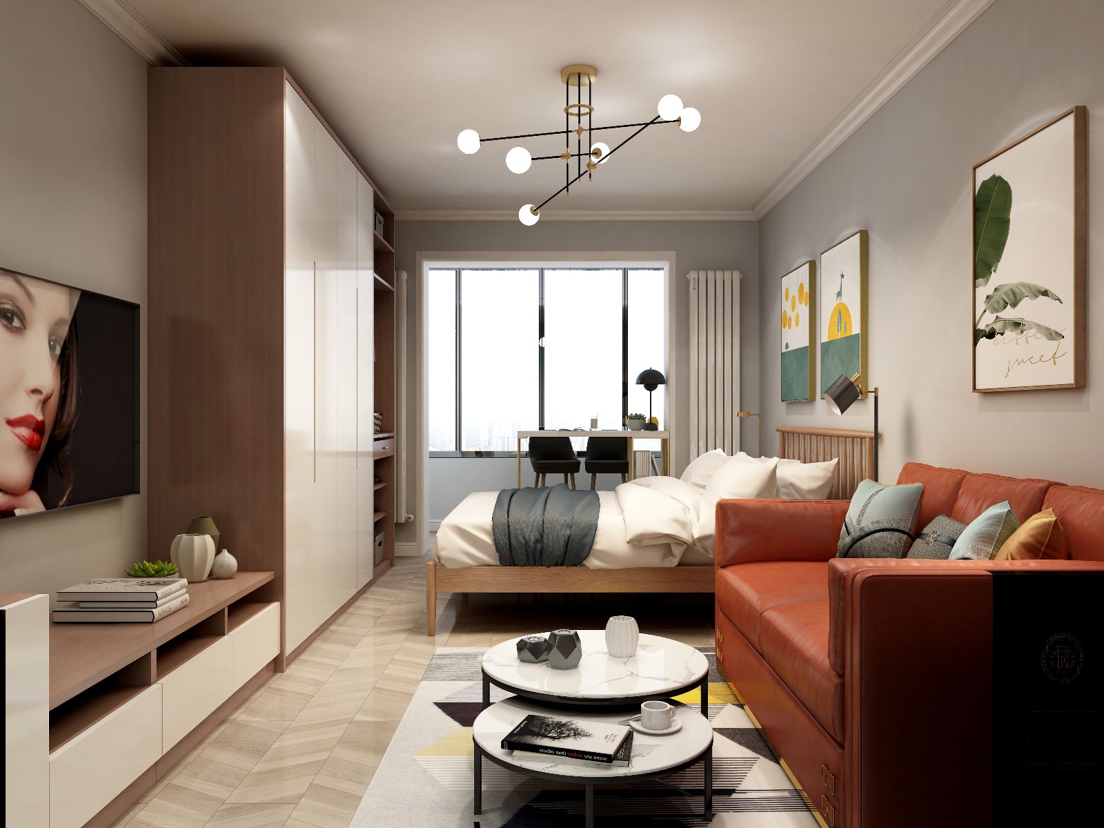 这是一套40平米的一居室现代装修风格的案例,色彩是整体的***亮点,空间场景的转换带来了色彩的碰撞。