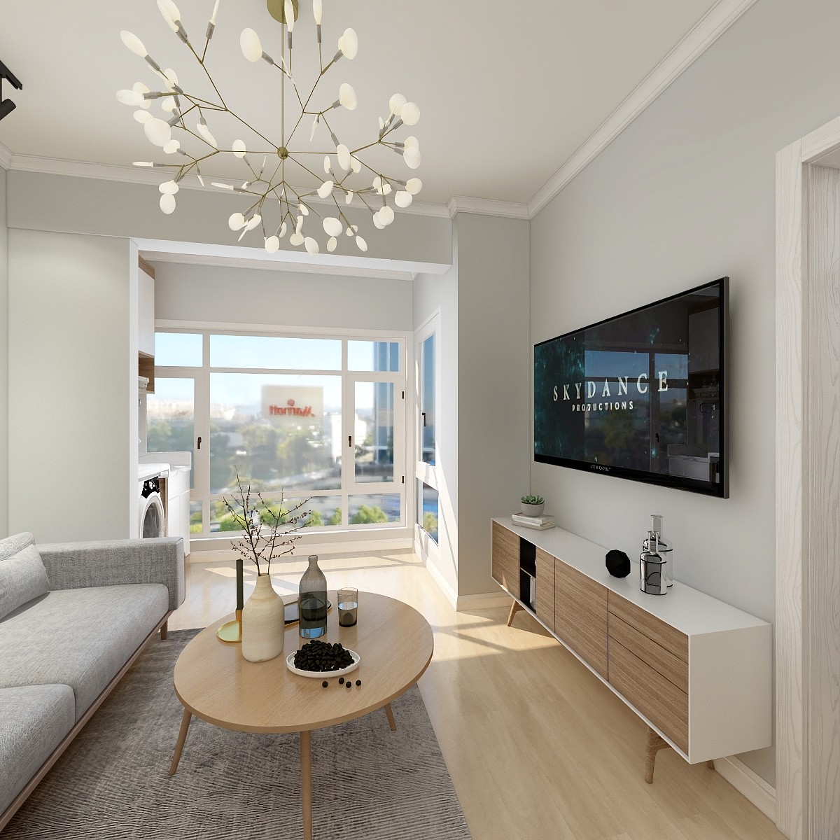 简约的沙发与茶几,搭配独特的台灯设计,彰显房主人的审美品味。