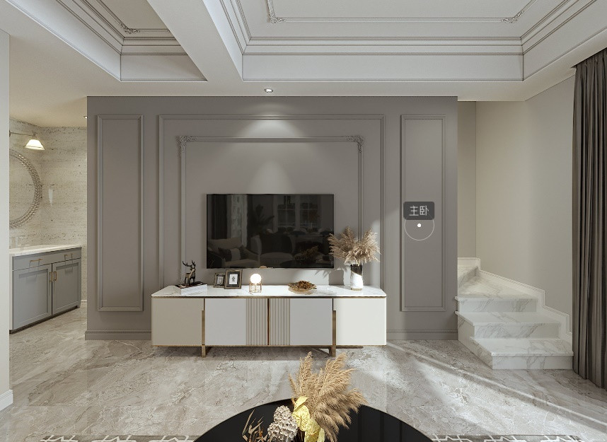 客餐厅采用了一些法式线条来进行吊顶和电视墙处理,在家具和软装上选择了轻奢元素进行搭配,整体风格既和谐又新颖,高贵中不失时尚,将法式和现代轻奢完美融合,在风格上也体现了不一样的设计感。