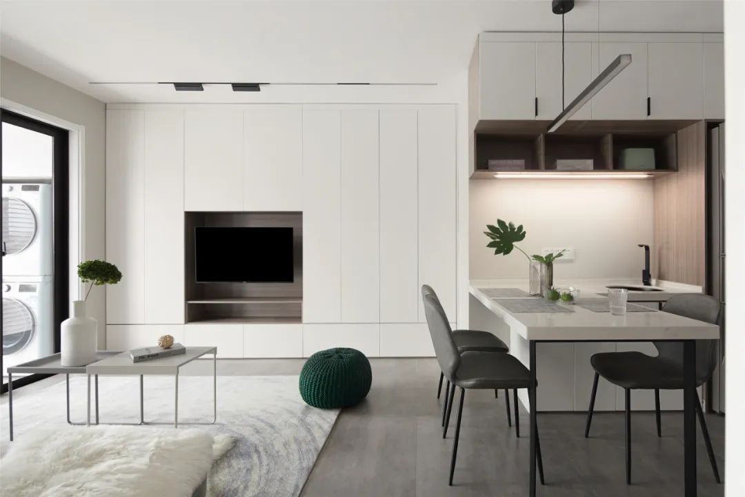 我们以充分的收纳和干净的块面来处理空间以减少人的时间被琐碎事物的干扰,将功能重叠于空间,让男女主人可以在不同的空间使用时增加场景交流,打造一个小而美的居家空间;