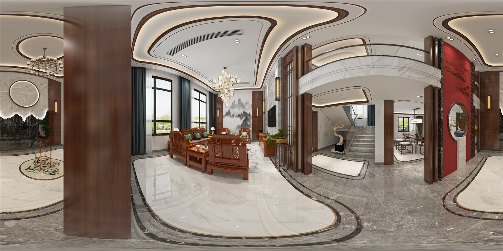 时尚中式,曲线吊顶,