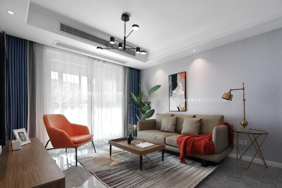 橙色的单椅、红色的毯子、搭配胡桃木的温暖优雅,在这个温柔内敛外表下,藏着活力跳脱的气质。