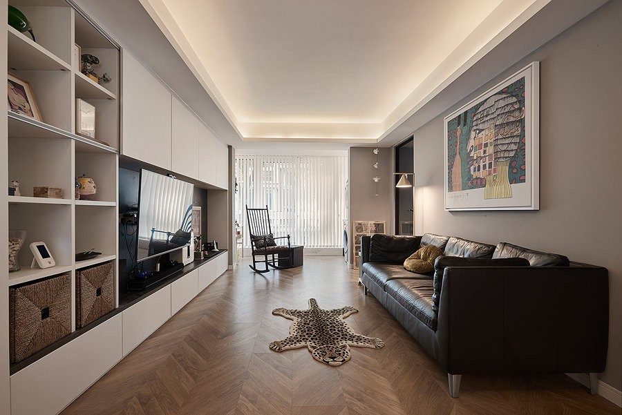 现代简约风为装修基调,加入大理石、木饰面的硬装。