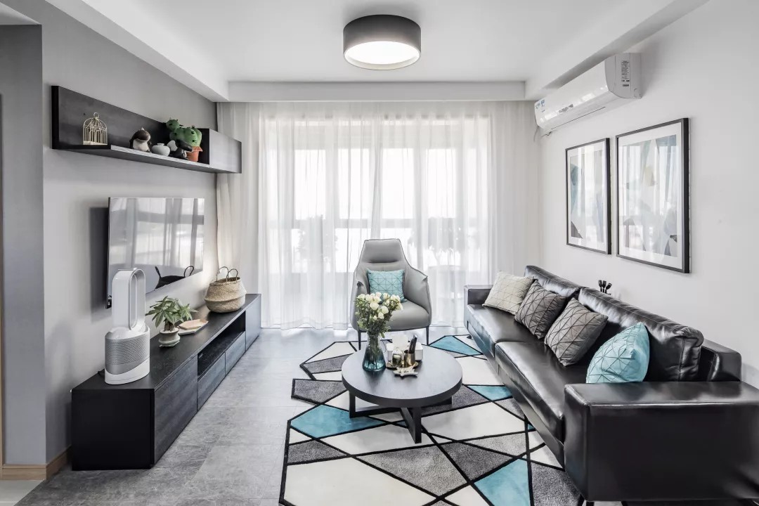 这是一套90平的两居室,选择了现代简约风的装修,以灰白黑为主,采用纯色系打造出了一个简洁漂亮、时尚有质感的居室,让不大的新房,也别有一番美感,而这不奢华,又特别凸显气质的格调,相当受年轻人喜欢,没有那么复杂繁琐,没有那么花哨靓丽,多了几分成熟与沉稳。