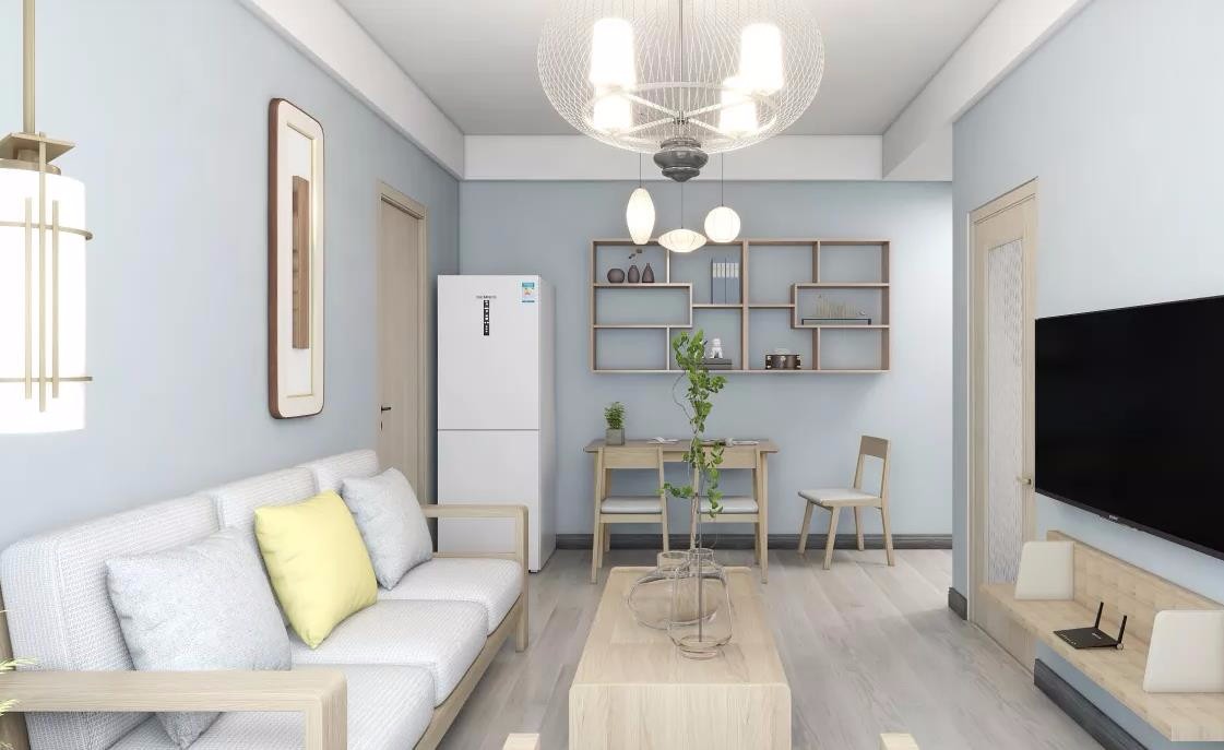 纯色的沙发背景墙,不带任何装饰物,单调简约。