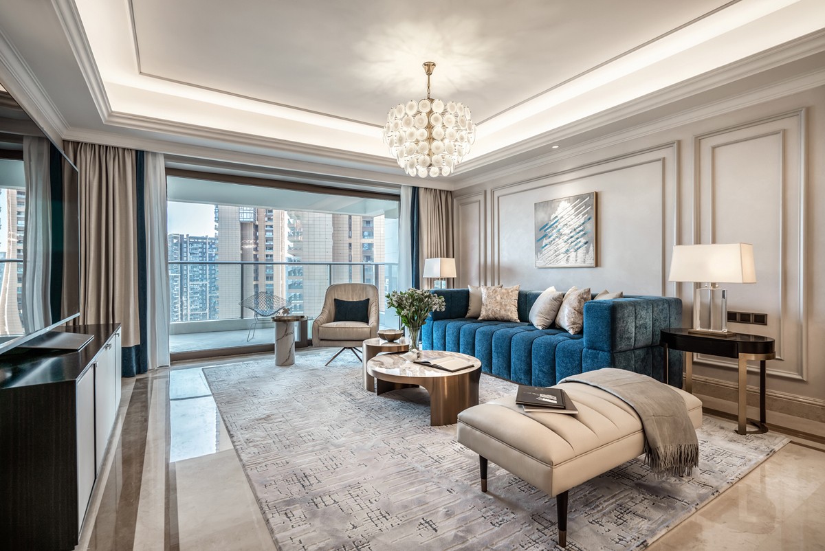 以简约干净的灰白铺陈出空间的底色,以金色为笔