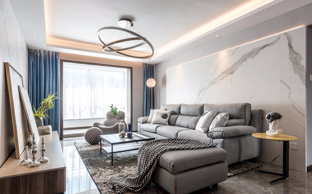 款式虽旧但质地柔软的沙发可以给用户舒适的包裹感和安全感,在沙发旁放置一张异型的沙发和对比色鲜明的抱枕可以很好的打破这个格局,将家中温暖的氛围烘托出来。