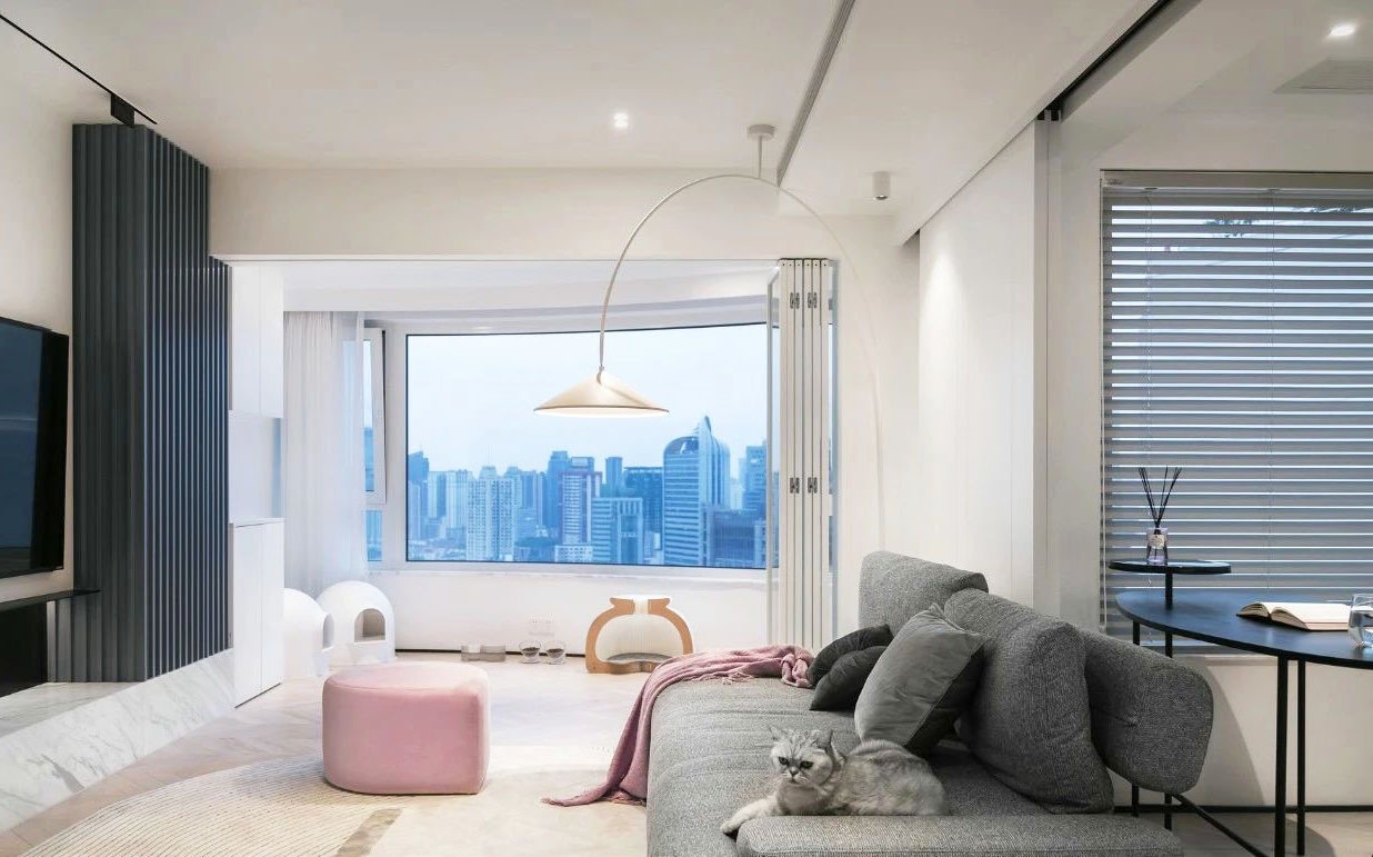 因为是超高层,装完地暖只剩下2570mm的层高,所以整个家以纯净白色为主,放大空间的同时更显明亮,不会觉得压抑