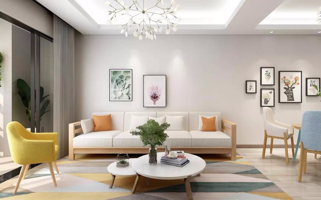 客厅采用传统的家具布置, 茶几,沙发的传统标配,彰显个性的则是房顶的吊灯,柔软的光线让这间屋子变得非常温馨