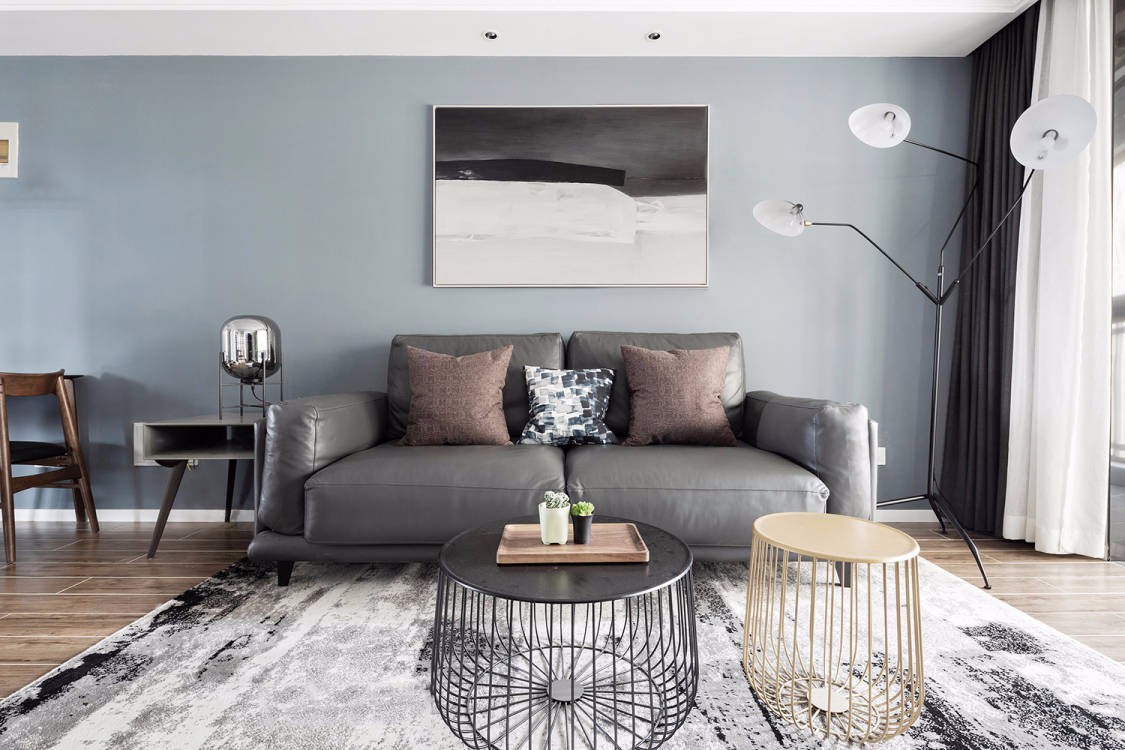 蓝灰调的深浅搭配,铁艺、实木、黑白灰的装饰画,绝美的搭配,没有过多的修饰,都是恰到好处的舒适感。