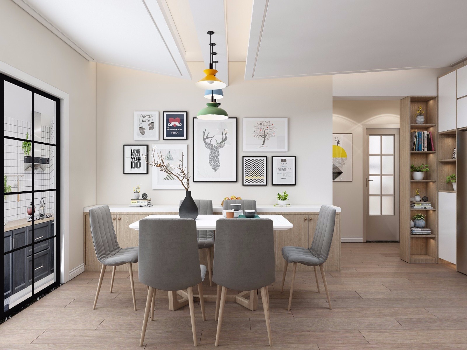 本案在结构上改动了厨房的空间,首先扩大了餐厅的一个区域,同时扩大了整个客餐厅的动线空间,整体更通透。加上开放的西厨,满足平常的休闲需求。本案业主是一对年轻人,打算做婚房,对房子的环保和储物空间要求高。并各自要有独立的办公区域。