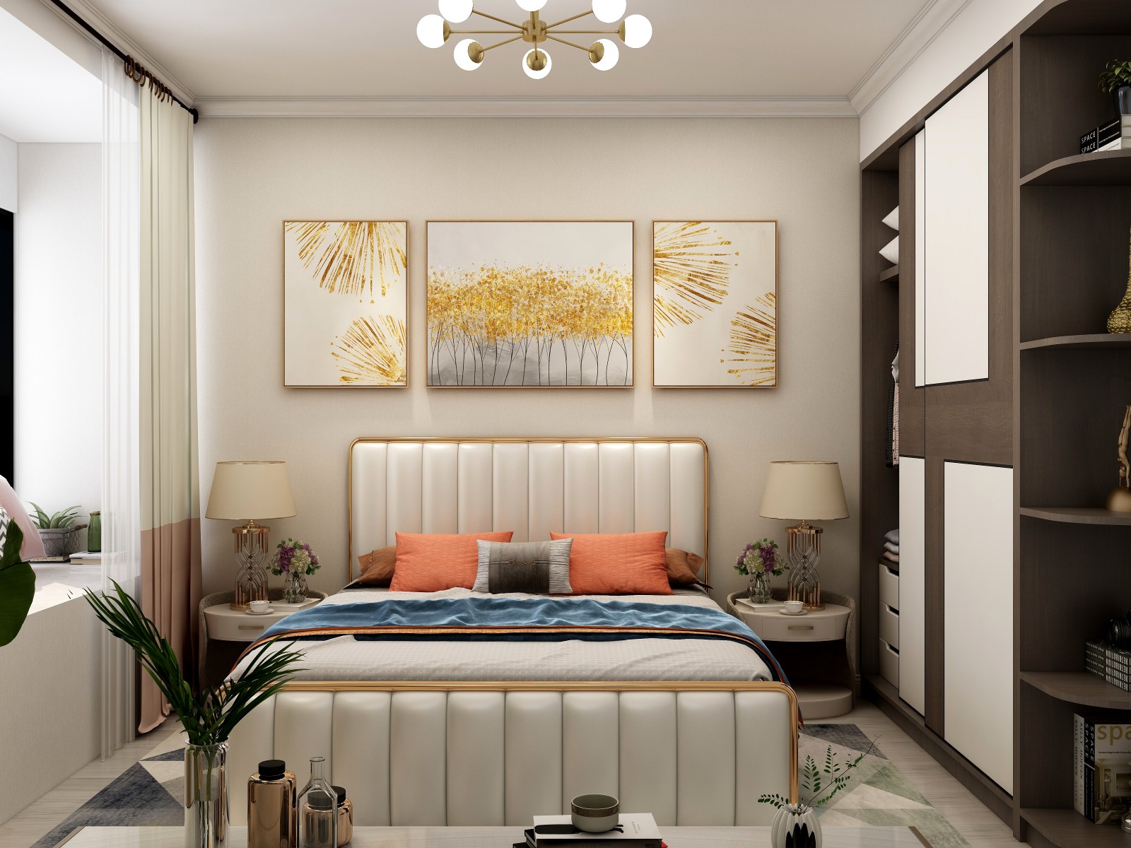 卧室整体采用温和的色调,保证睡眠的舒适