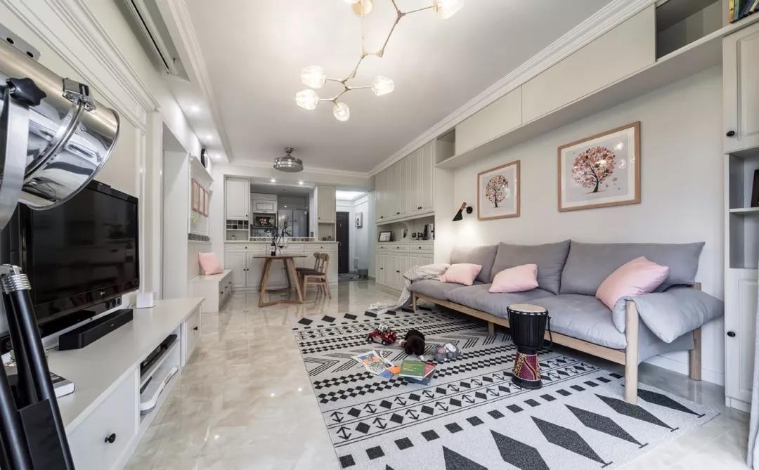 这是一套104平的现代简约风三居室,整体给人的感觉就是简单而舒适,在白色为主的空间内,加入了浅灰色和粉色的设计,增添了一丝浪漫感觉。设计师还巧妙的变动了几个墙的位置,让房子变的更加的实用!