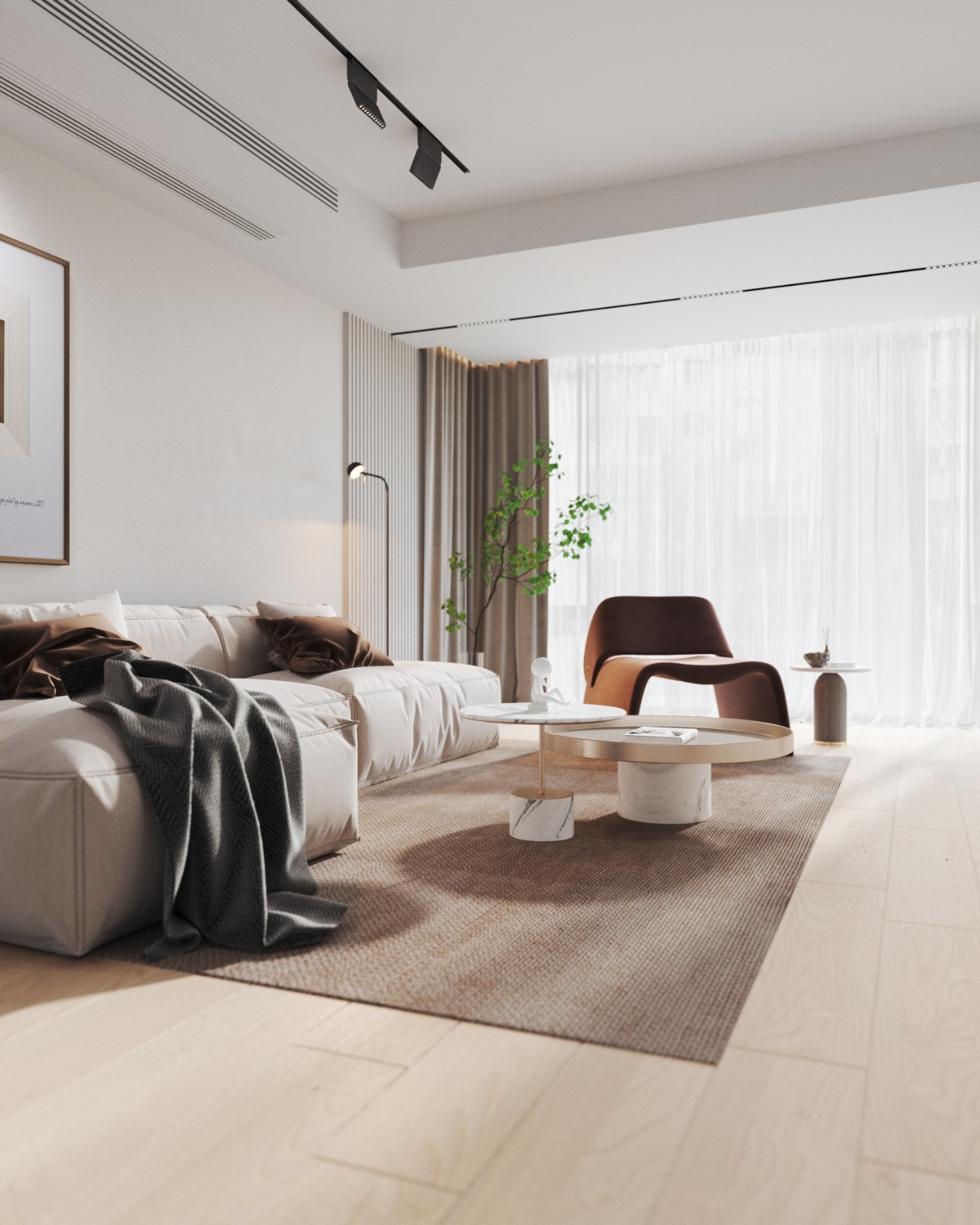 所有的软装简约而又不简单,颜色的层层递进使画面看起来和谐且优雅。在简约的基础上又不失精致的味道,以最简约自然本质,打造极简生活空间。