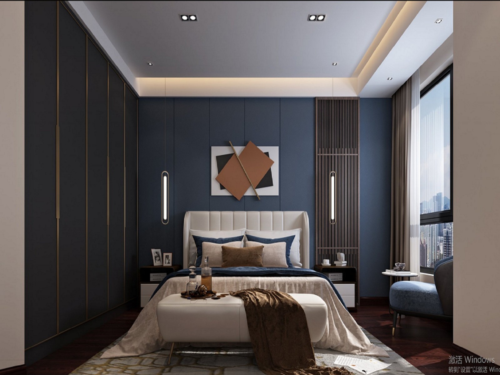 但这里大胆尝试用低调奢华藏青色为主色调,在工作学习的时候更有活力。