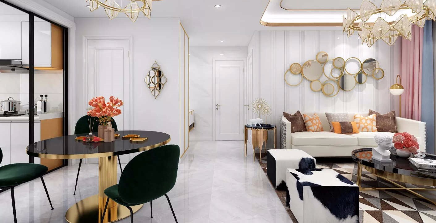 空间以金属、皮革的中性色调为主,用色彩的纯度传递细腻的质感。造型简洁,线条流畅的家具组合搭配,营造出稳定、协调、温馨的空间感受,满足现代年轻家庭的轻奢需求。