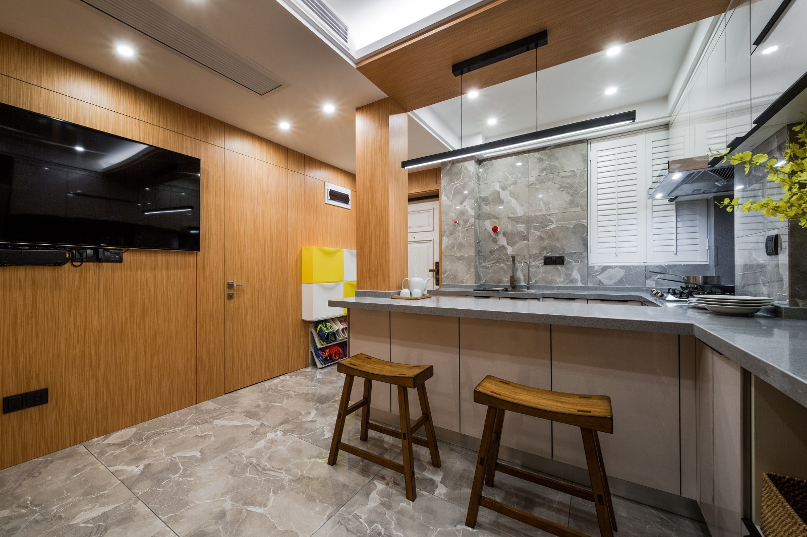 50平 2房一厅 打通厨房餐厅 做成开放厨房 空间通透