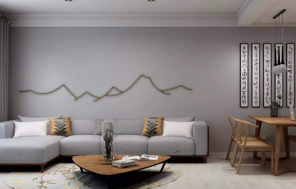 全屋的色调以***灰、木色、白色为主,金属饰品点缀,现代简约中加入中式元素,时尚不失高雅,冷峻不缺温存。喜爱中式元素又不会显得呆板老套。