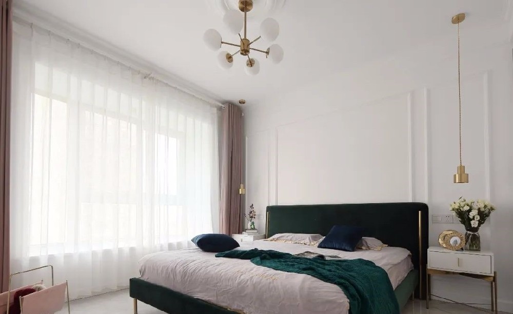 一个家的***感,源于空间由内而外散发出来的气质美感。净白精致的石膏线和灯盘,营造空间线条感;浓郁深沉的布艺家具,呈现视觉色彩感;而明亮又不过度闪耀的黄铜,恰到好处地点缀,“色”的魅力尽情演绎复古轻奢的***与精致。
