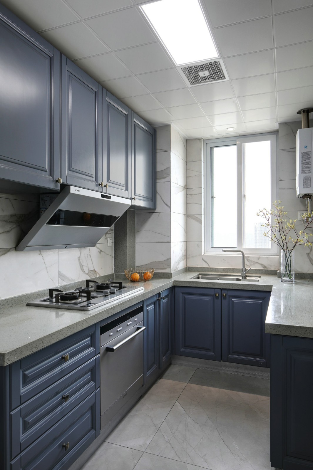 餐厅设计了立体感的设计造型,蓝色背景女主人很喜欢。每周买一次鲜花放置在餐桌上,尤爱百合,因为它不仅美,香,还不娇气。喜悦,源于对生活细微处的每一刻享受。