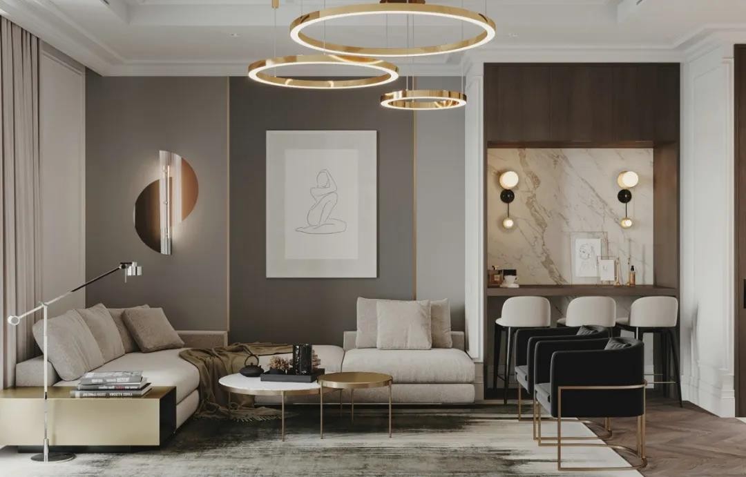 黄铜装饰点缀了空间,为简约的空间注入轻奢的气息,避免了空间的单调。