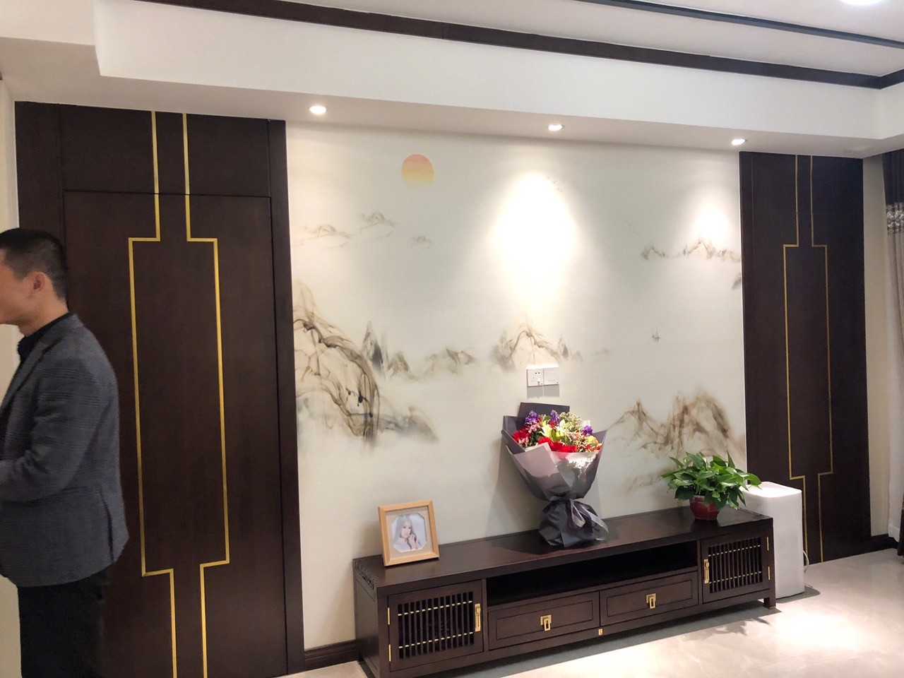 客厅为新中式设计,背景墙中国风