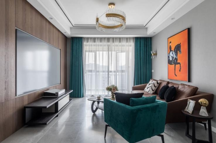 客厅的设计,是把阳台扩了出去,让客厅更加的宽敞,现代风的沙发、搭配上了个性化的茶几。