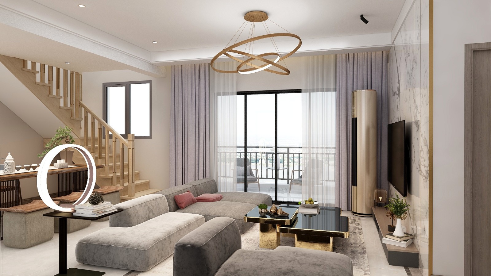 采用了现代轻奢风格,墙面乳胶漆,金属质感的家具极具体现